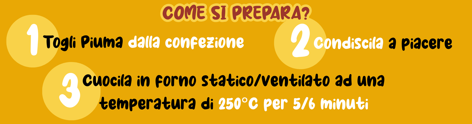 - Cottura in soli 5/6 minuti in Forno statico o ventilato a 220°C